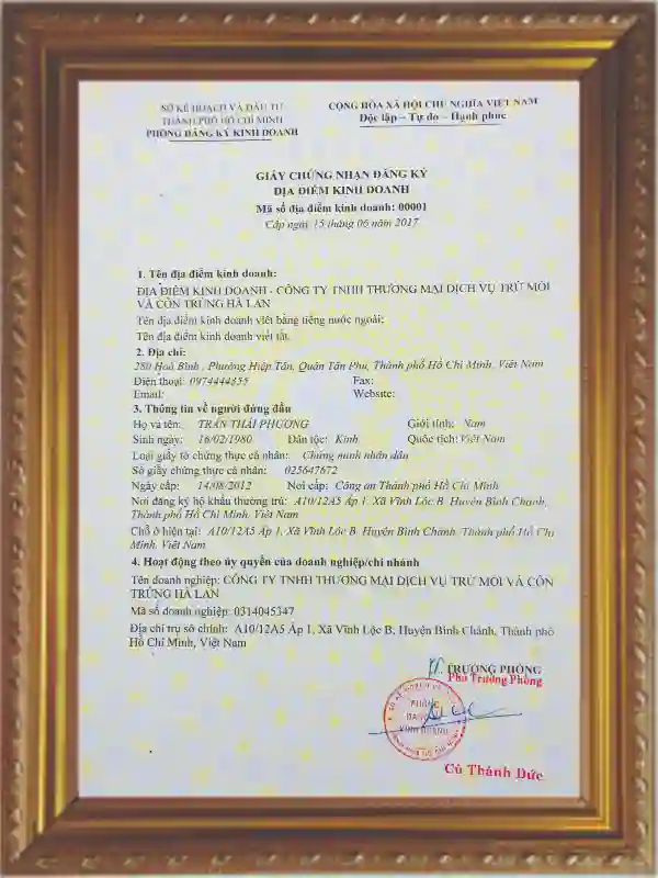 Công ty TNHH TM DV trừ mối và côn trùng Hà Lan